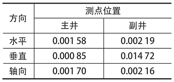 表2 頻率 600 Hz 時主井和副井主軸承座驅動端振動幅值比較